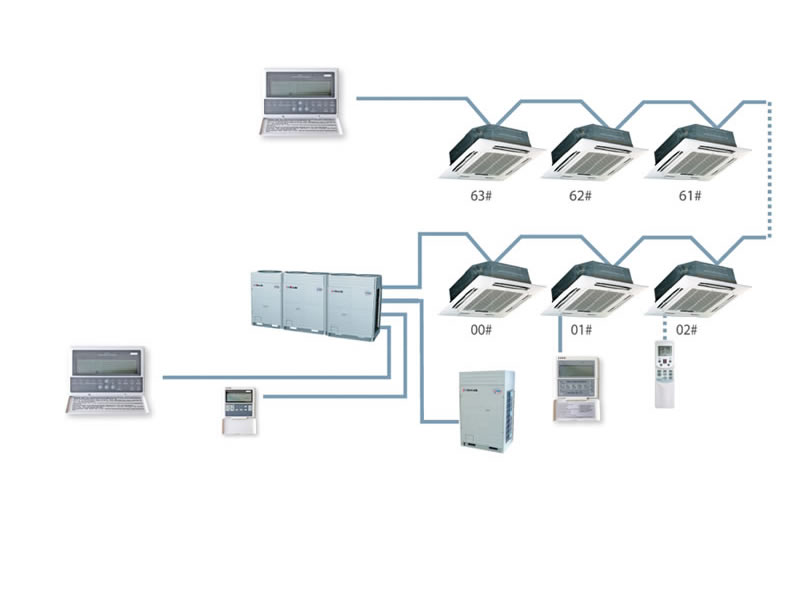The large number of connectable units is suitable for large buildings and projects. Maximum 64 indoor units with capacity up to 130% of total power of outdoor units can be connected as one refrigeration system.