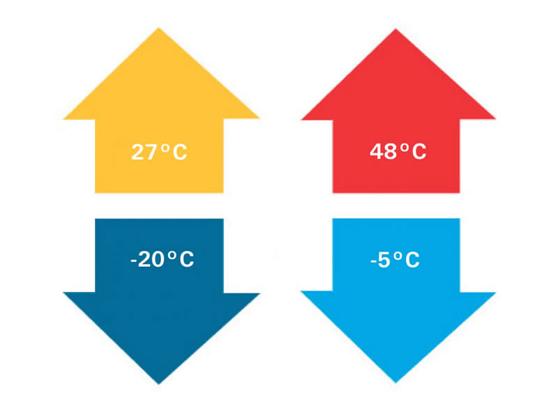 The SDV4 K series system operates stably at extreme temperatures ranging from -20°C to 21°C in heating mode and -5°C to 48°C in cooling mode.